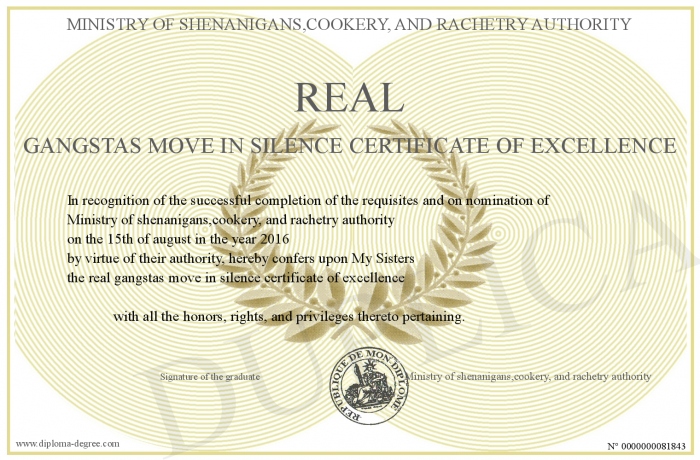 Certificate-degree can have your real gangstas move in silence certificate of excellence