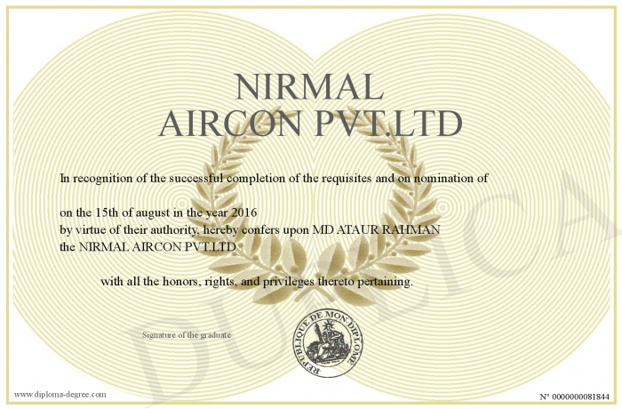 Certificate-degree can have your NIRMAL AIRCON PVT.LTD