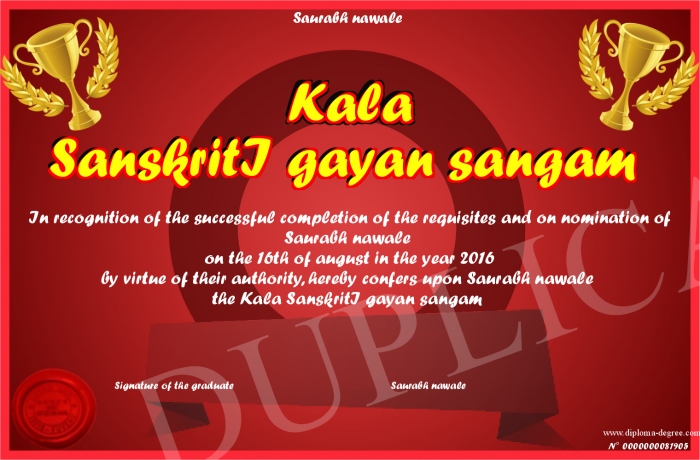 Certificate-degree can have your Kala SanskritI gayan sangam