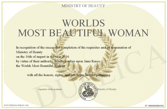 Certificate-degree can have your Worlds Most Beautiful Woman