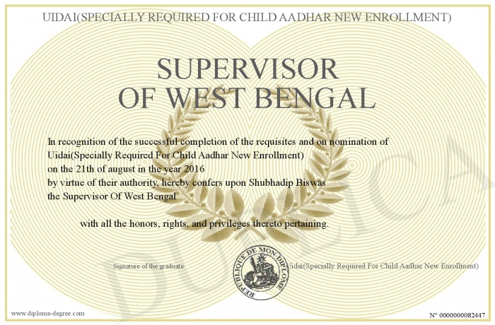 Certificate-degree can have your Supervisor Of West Bengal